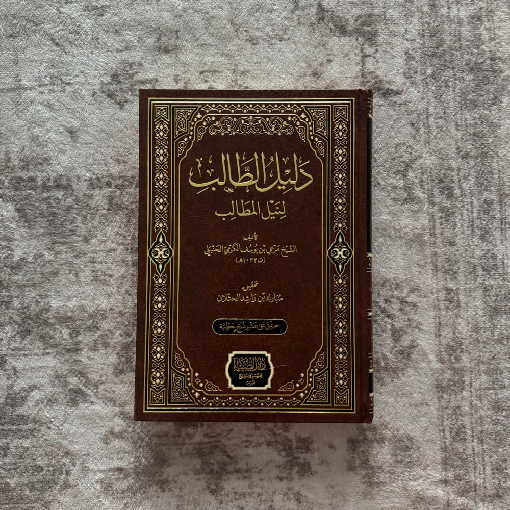 Dalil al-Talib fi Nayl al-Matalib is a classical Hanbali fiqh manual written by Mar‘i ibn Yusuf al-Karmi. It is a concise yet comprehensive text that outlines the relied-upon positions of the Hanbali school in acts of worship transactions family law and judicial matters. The book is valued for its clarity precise wording and structured presentation which makes it suitable for both study and memorization. It serves as a foundational text for students of Hanbali jurisprudence and is often studied alongside commentaries and explanations to deepen understanding of the madhhab.